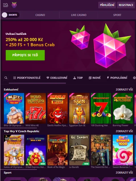 | Video sloty | 3 500+ | Bonusy, free spiny, Megaways, od 0,10 CZK |